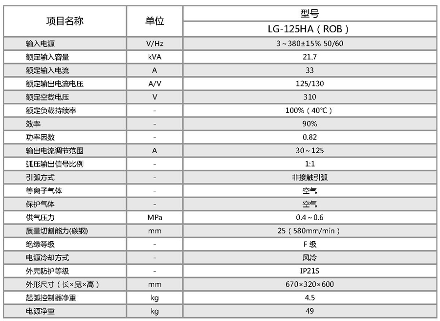 • 產(chǎn)品名稱: LG-125HA(ROB)機(jī)器人專用逆變式等離子切割機(jī)