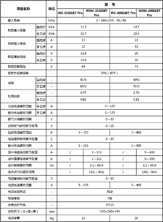 WS(M)-315/400IGBT PRO逆變式直流(脈沖)氬弧焊機(jī)