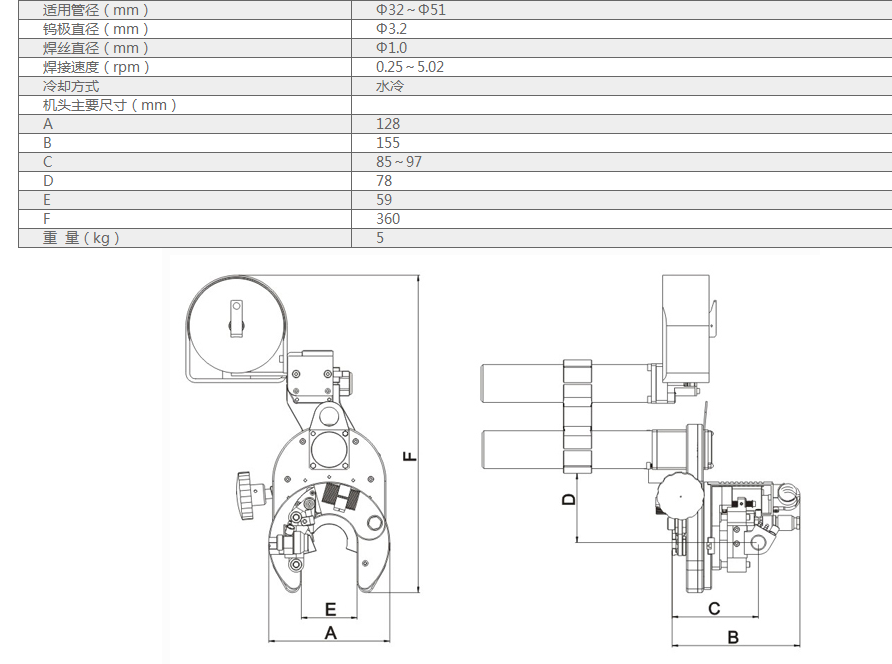 該焊槍是專為管/G焊接設(shè)計(jì)的專用焊槍,適用于容間距形式的管/管自動(dòng)化焊接。可焊接碳鋼、不銹鋼等各種管/管對(duì)接。管子直徑范圍中φ32~φ51mm,可選擇采用填絲或自熔兩種方式??勺詣?dòng)調(diào)節(jié)弧長(zhǎng)、橫擺功能??膳c orbital5000程控焊接電源配套使用,可精密實(shí)現(xiàn)全位置TIG/管焊接,焊接結(jié)果重現(xiàn)性高,可達(dá)到理想的焊接效果。主要應(yīng)用于化工、食品、鍋爐、軍工和核電等行業(yè)