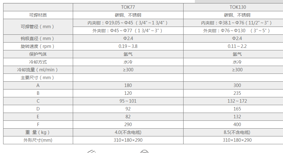 主要部分來用鋁制;結(jié)構(gòu)輕巧,卡鉗式裝夾方式可道用于不同管徑采用無間隙齒輪傳動設(shè)計(jì)、旋轉(zhuǎn)平穩(wěn)、轉(zhuǎn)動慣量小,無卡阻現(xiàn)象;機(jī)械筆模導(dǎo)向機(jī)構(gòu),使鎢極與工件表面的距離保持恒定;適用海壁碳鋼、不運(yùn)鋼材質(zhì)的管道焊接;焊槍循壞水冷,連續(xù)工作時(shí)間長可自熔、加絲焊接