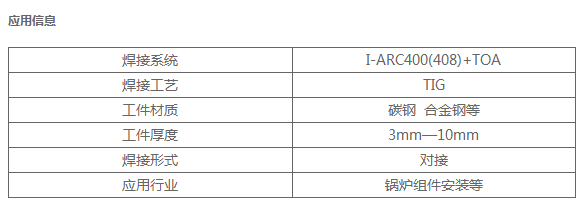工件焊接主要采用V型坡口的形式,打底焊保證焊縫根部成型,填充及蓋面焊使用送絲橫擺功能確保焊篷表面成型美觀。以滿足鍋爐行業(yè)的焊接要求;